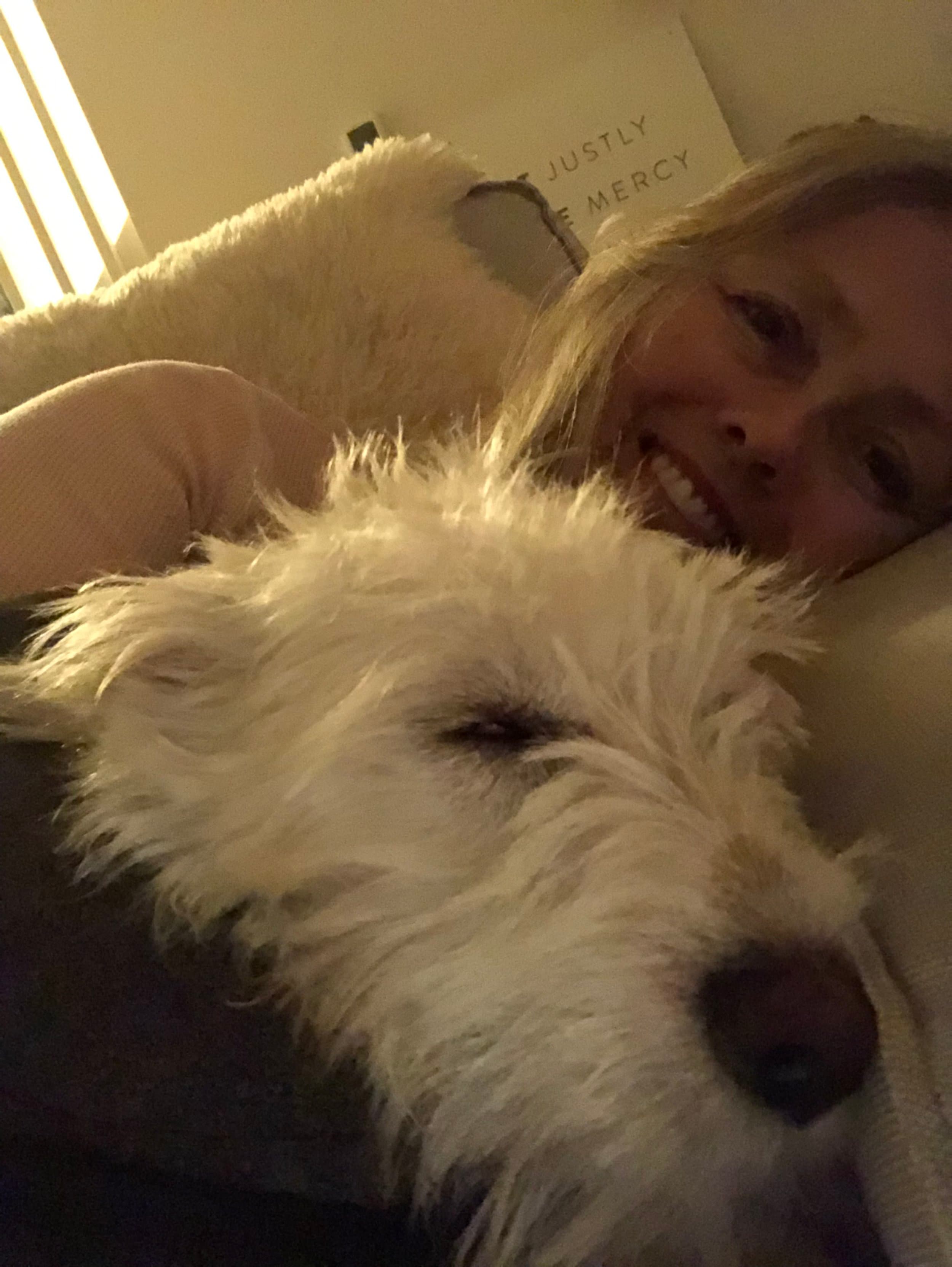 P.S. Our puppy is really great therapy for our family! Here’s a blurry photo of us resting together. :)